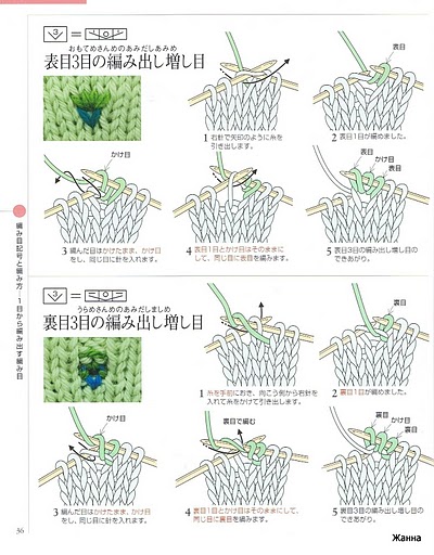 Mũi chập hai hay giảm mũi bên phải (K2tog, K2tog tbl, P2tog, P2tog tbl)